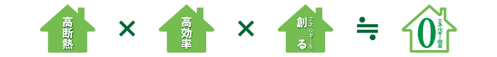 住まいの断熱性・省エネ性能を上げること、太陽光発電などでエネルギーを創ることにより、年間の一次消費エネルギー量がゼロ以下となる住宅のことです。